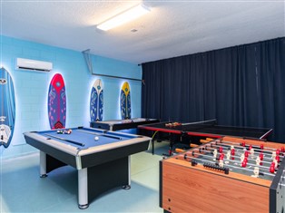 9-Zimmer-Haus 300 m² auf 2 Stockwerken. Schön und geschmackvoll eingerichtet: Wohn-/Esszimmer mit Esstisch und TV (Flachbildschirm). Ausgang zum Schwimmbad. Spielzimmer. 1 Zimmer mit 2 Betten. 1 Zimmer mit 1 Doppelbett (160 cm), TV (Flachbildschirm). Grosse, offene Küche (Backofen, Geschirrspüler, Mikrowelle, Tiefkühler, elektrische Kaffeemaschine) mit Bar, Esstisch. Bad/WC. Klimaanlage. Obergeschoss: Wohnzimmer mit TV (Flachbildschirm). 2 Zimmer, jedes Zimmer mit 1 Doppelbett (200 cm). 1 Zimmer mit 1 Doppelbett (160 cm). 1 Zimmer mit 2 x 2 Etagenbetten. Bad/WC, Dusche/WC. Zur Verfügung: Waschmaschine, Wäschetrockner. Internet (Wireless LAN, gratis). Bitte beachten: geeignet für Familien. Nichtraucher-Haus.